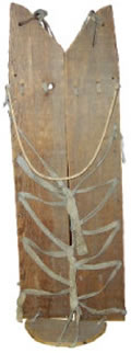 Placă de purtat Navajo - Papoose Inuit. Bebeluş cu picioarele înfăşate într-o poziţie non-fiziologică.